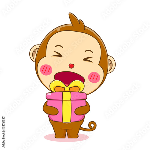 Cute Monkey Holding A Gift Box Cartoon Illustration Stock Vector Adobe Stock